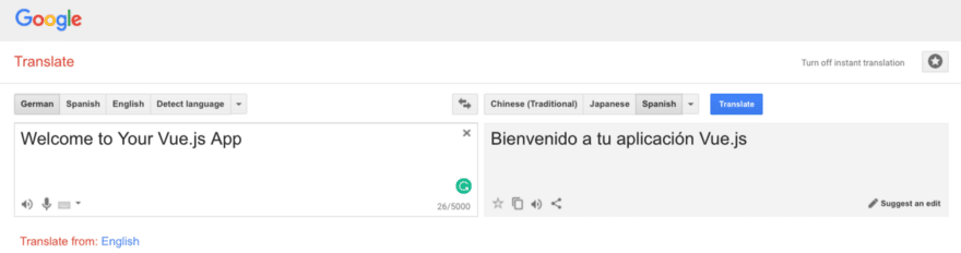 Now we have to provide a Spanish translation for this phrase. Since I do not speak Spanish fluently, I am going to use Google Translate.
