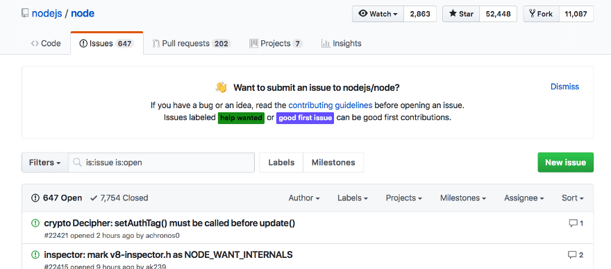 Learn how to contribute to open source software and the Node.js project.