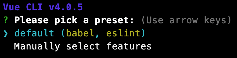 The CLI will ask you if you want to use the default settings or manually select features.