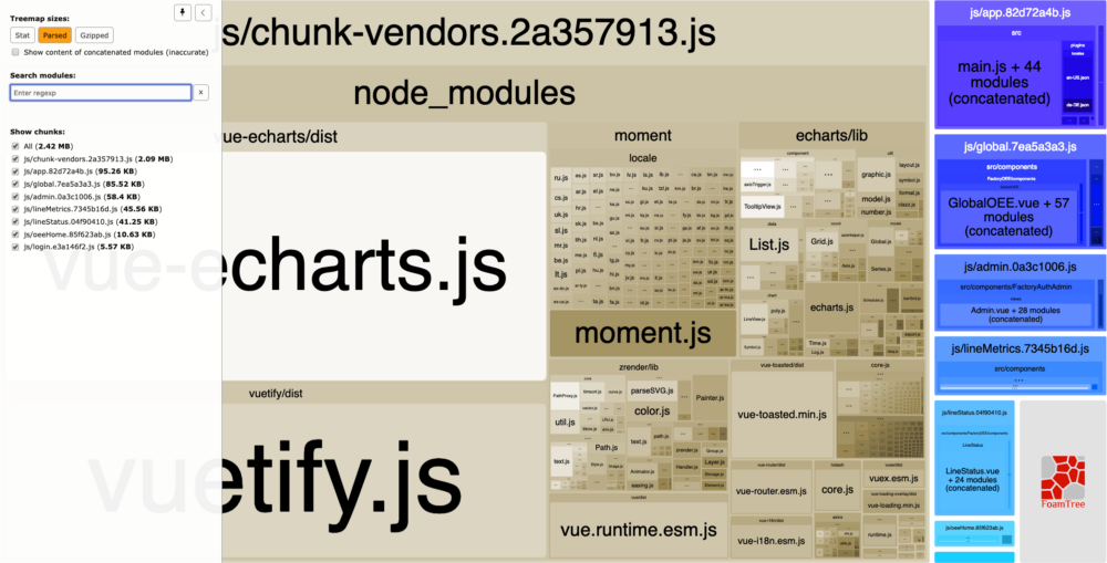 I work on the Industry 4.0 team at Stanley Black & Decker. Our team recently created the equivalent of an App Store for Stanley’s manufacturing plants worldwide. Factories can visit the marketplace and select what applications they need based on the products they are producing at that location. This will create a custom build that bundles all of these applications together for the plant to run. Due to the bundling of such a large number of applications our Vue build for production resulted in multiple warnings about excess size.