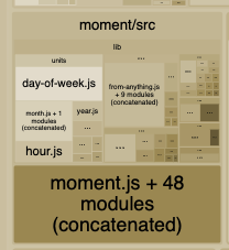 Moment.js is taking up 234.36KB in size in our bundle. When you look at the image, the overwhelming largest part of that size is the internationalization locales for all the languages that they support. We do not use this part of moment.js at all so this is a lot of dead weight that is being included in our bundle.